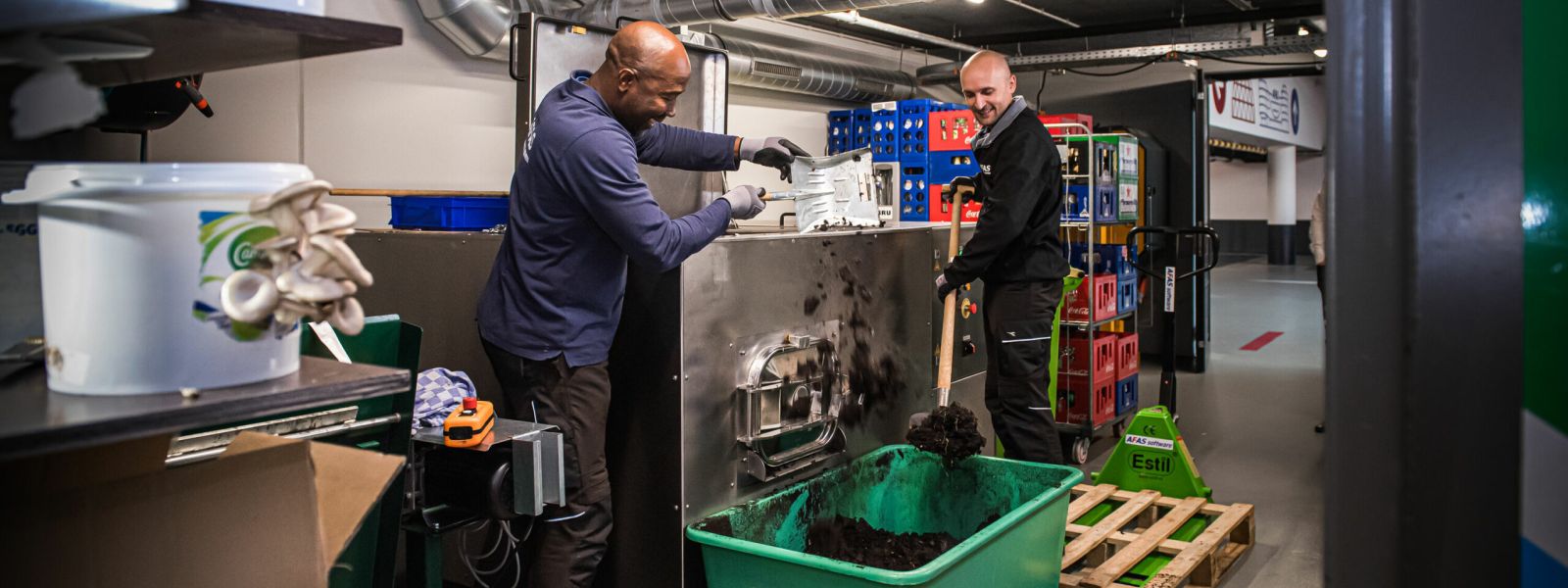 - Minder vrachtwagens voor afval, doordat we het eerst zelf klein maken met bijvoorbeeld de glasverpulveraar en papierpers.