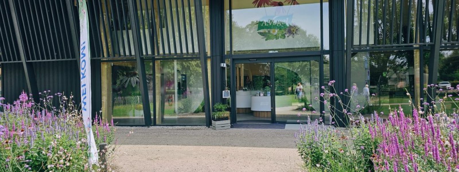 A.Vogel Nederland B.V. heeft -passend in de landelijke omgeving- het volledig in-hout-op getrokken bezoekerscentrum gerealiseerd. Het gebouw heeft de vorm van een veldschuur met maar dan eigentijdser uitgevoerd met houten gebint constructie, transparante vliesgevel en een groen dak.