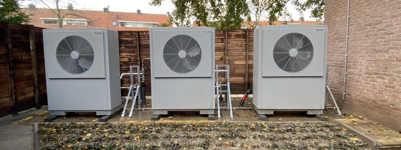 Plaatsen van 3 lucht/water warmtepompen met max 96 (3×32) kw thermisch vermogen.