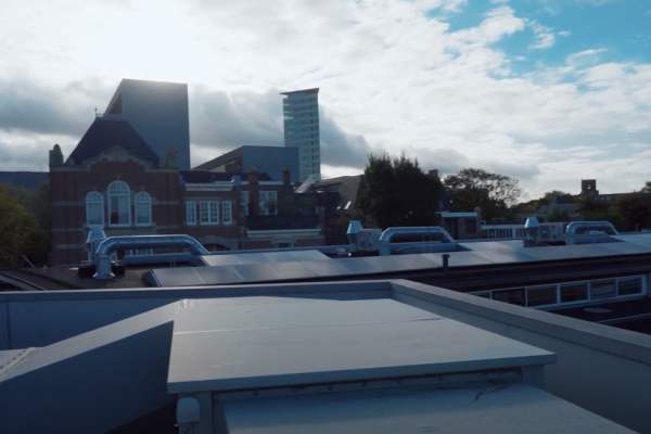 Op het dak van de school zijn zonnepanelen geïnstalleerd, waarmee een groot deel van de elektriciteit wordt opgewekt die nodig is voor het dagelijkse gebruik.
