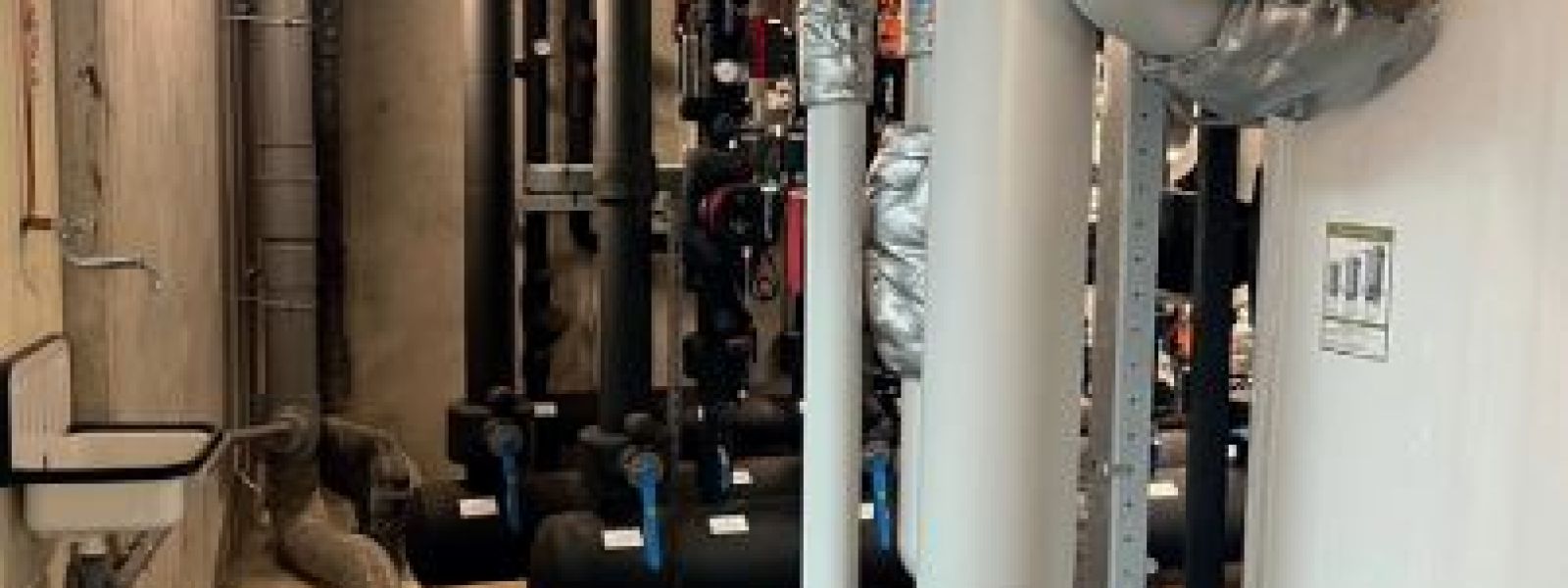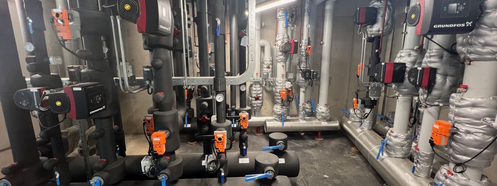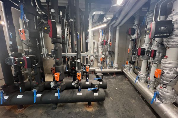 Stonden er vroeger 2 grote CV ketels, nu is er een indrukwekkende WKO installatie in de technische ruimte om de energie vanuit de opslag in de grond het gebouw in te sturen met voldoende warmte of koelte. Dit scheelt gemiddeld zo’n 60.000 m3 gas op jaarbasis (= gemiddeld verbruik van 65 huishoudens). Tijdens de voorbereiding bleek er sprake van netcongestie, een tekort aan elektra vermogen om gasloos te gaan. De oplossing is gevonden in slimme regeltechniek, om zo de vraag naar elektra beter te sturen en te verdelen over de dag, waardoor er geen zwaardere aansluiting of batterij nodig is.