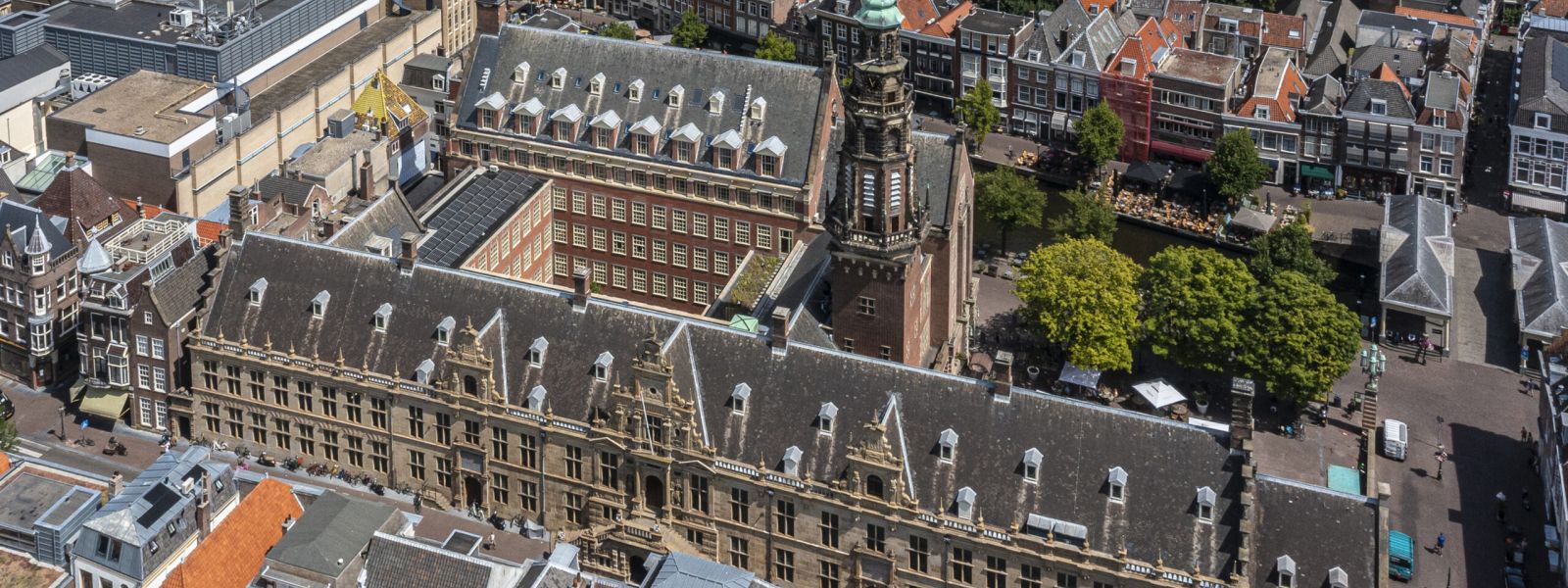 Het Stadhuis van Leiden is een rijksmonument dat recent grondig is gerenoveerd en verduurzaamd. Bij de verbouwing is ingezet op het behoud en hergebruik van het bestaande gebouw, gecombineerd met moderne, energiezuinige installaties. Het stadhuis is volledig gasloos en wordt verwarmd en gekoeld met een warmte-koudeopslagsysteem (WKO) in combinatie met oppervlaktewater. Daarnaast zijn isolatiemaatregelen toegepast en wekt het gebouw deels zijn eigen energie op met zonnepanelen. In het hart van het gebouw is een groene binnentuin gerealiseerd, die bijdraagt aan biodiversiteit, comfort en klimaatadaptatie. Met deze renovatie laat de gemeente Leiden zien hoe ook monumentaal vastgoed toekomstbestendig en duurzaam kan worden ingezet.
