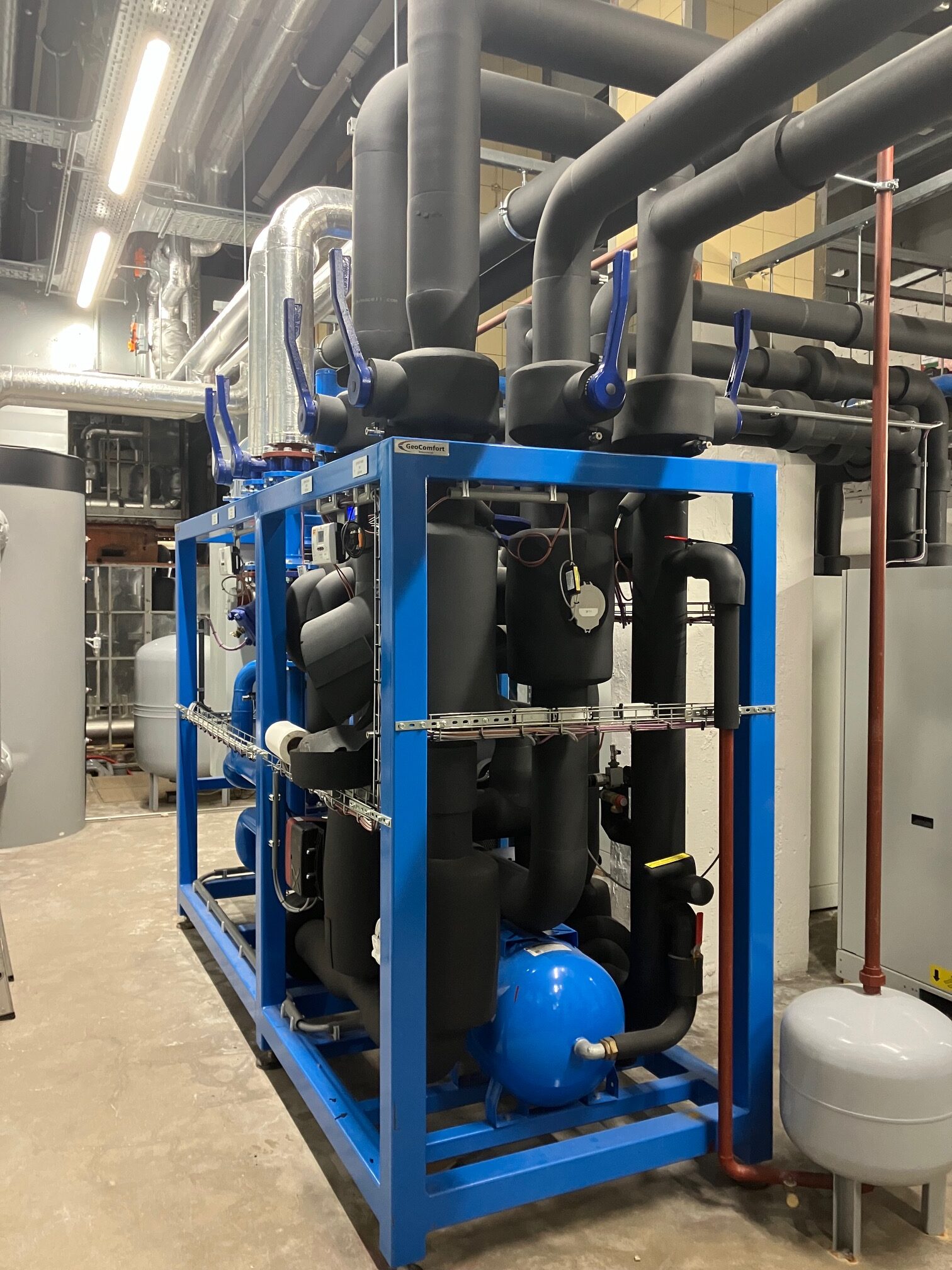 Zeven luchtbehandelingskasten regelen de binnentemperatuur. Het gebouw wordt deels verwarmd door vloerverwarming met warmte vanuit de WKO. Bij hele lage buitentemperaturen springen cv-ketels en radiatoren bij. ‘s Zomers geven de koelplafonds met het koude opgewekte water verkoeling.