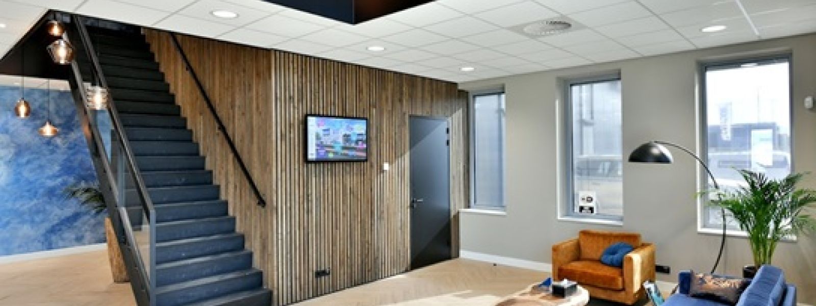 We gebruiken ledverlichting: duurzaam, energiezuinig, met lange levensduur en de juiste kleurtemperatuur voor kantoorwerk. Triple glas houdt de warmte binnen en voorkomt energieverlies. De kantoren zijn voorzien van vloerisolatie en vloerverwarming/-koeling om een stabiel klimaat te realiseren en energie efficiënt af te geven.