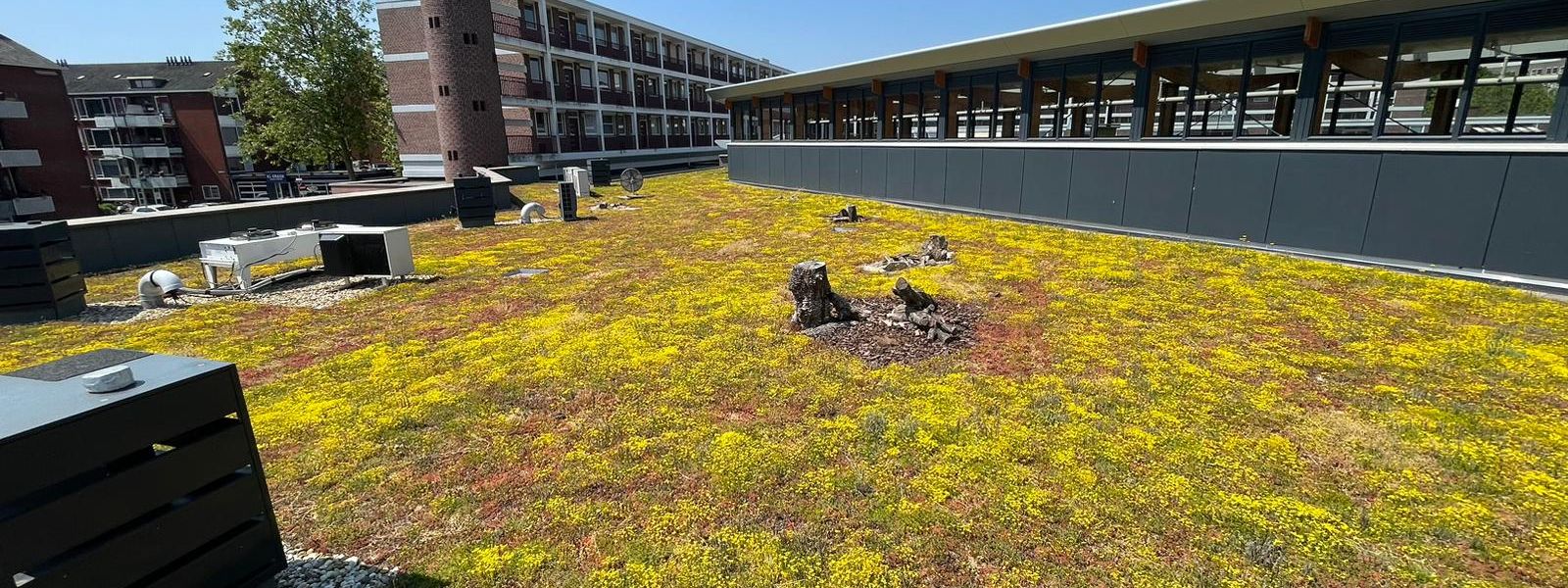 Alles op het gebied van duurzame daken; witte dakbedekking (isolatie), groendak en gele dakbedekking.