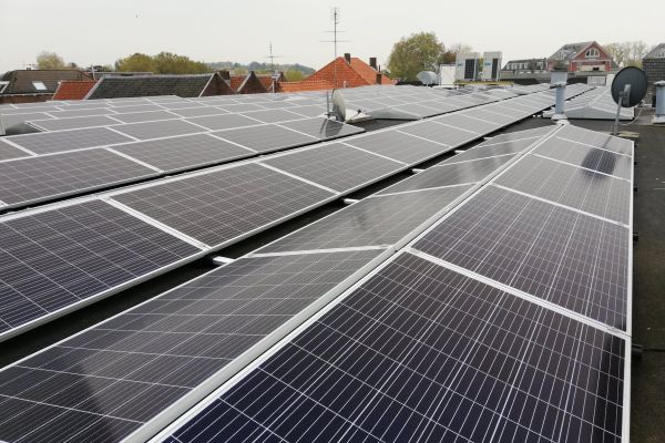 - en 260 zonnepanelen op ons platte dak laten plaatsen. We wekken ongeveer 80.000 kWh per jaar op.