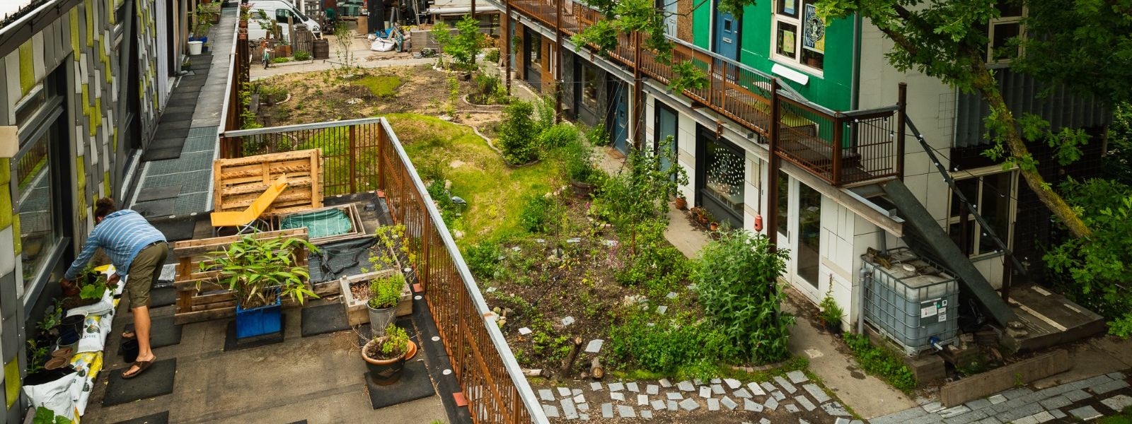 - Bouw geen ruimte die niet wordt gebruikt, Gebruik geen nieuwe materialen als ze 2e hands beschikbaar zijn. De gebouwde omgeving in het Hof is beperkt en functioneel. Zo is er meer ruimte voor buiten en besparen we grondstoffen en materialen.