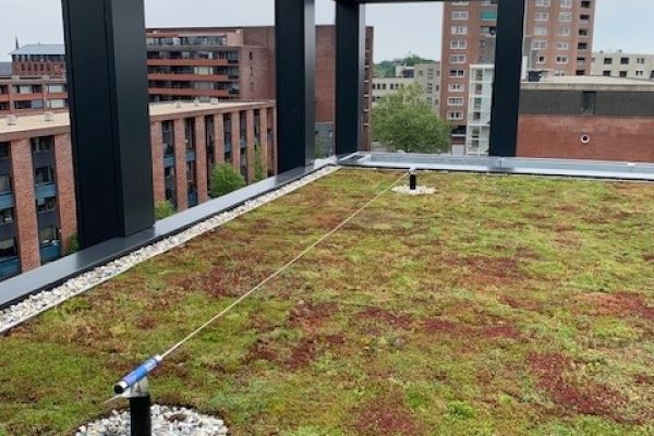 Het Huis voor de Stad is tussen 2019 en 2023 gerealiseerd als nieuw, centraal stadskantoor. Het gebouw is volledig gasloos en maakt gebruik van warmte- en koudeopslag (WKO) in combinatie met warmtepompen. Verwarming en koeling verlopen via klimaatplafonds, wat zorgt voor een gelijkmatige temperatuur en hoog comfort. Het gebouw is hoogwaardig geïsoleerd en voorzien van moderne gevels, kozijnen en beglazing. Op het dak zijn zonnepanelen geplaatst voor duurzame elektriciteitsopwekking. Daarnaast zijn groendaken met sedumbeplanting aangebracht, die bijdragen aan isolatie, waterbuffering en biodiversiteit.