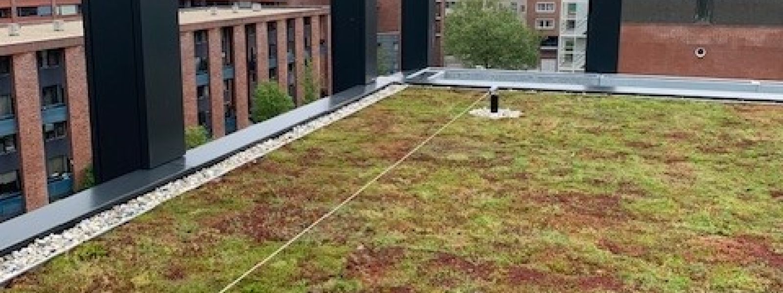 De buitenruimte rondom het gebouw is klimaatadaptief ingericht. Verharding is verminderd en vervangen door groen, met behoud van bestaande bomen en toevoeging van nieuwe beplanting. Regenwater wordt waar mogelijk afgekoppeld van het riool en opgevangen via wadi’s en infiltratievoorzieningen. Waterdoorlatende verharding helpt bij natuurlijke afvoer en infiltratie. Deze inrichting vermindert wateroverlast en hittestress en draagt bij aan biodiversiteit in de stedelijke omgeving.