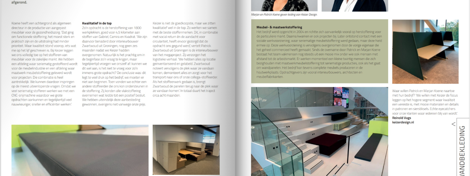 Bij Koene geloven we dat vakmanschap onmisbaar is en altijd zal blijven bestaan. En laat er nou geen vak mooier zijn dan het ambacht van meubelstoffeerder. Slimme technologie helpt ons daar een handje bij. Deze slimme technologie zorgt dat we veel minder materiaal gebruiken waardoor ook minder afval. Bewuste keuzes maken in duurzame materialen en circulariteit. Daarbij hebben we oog voor mens en omgeving. We kiezen bewust voor een team van gedreven medewerkers, die bij ons naast een werkplek ook hun plek in de maatschappij vinden. Wij zijn ontzettend zuinig op onze mensen. En op onze materialen en grondstoffen.