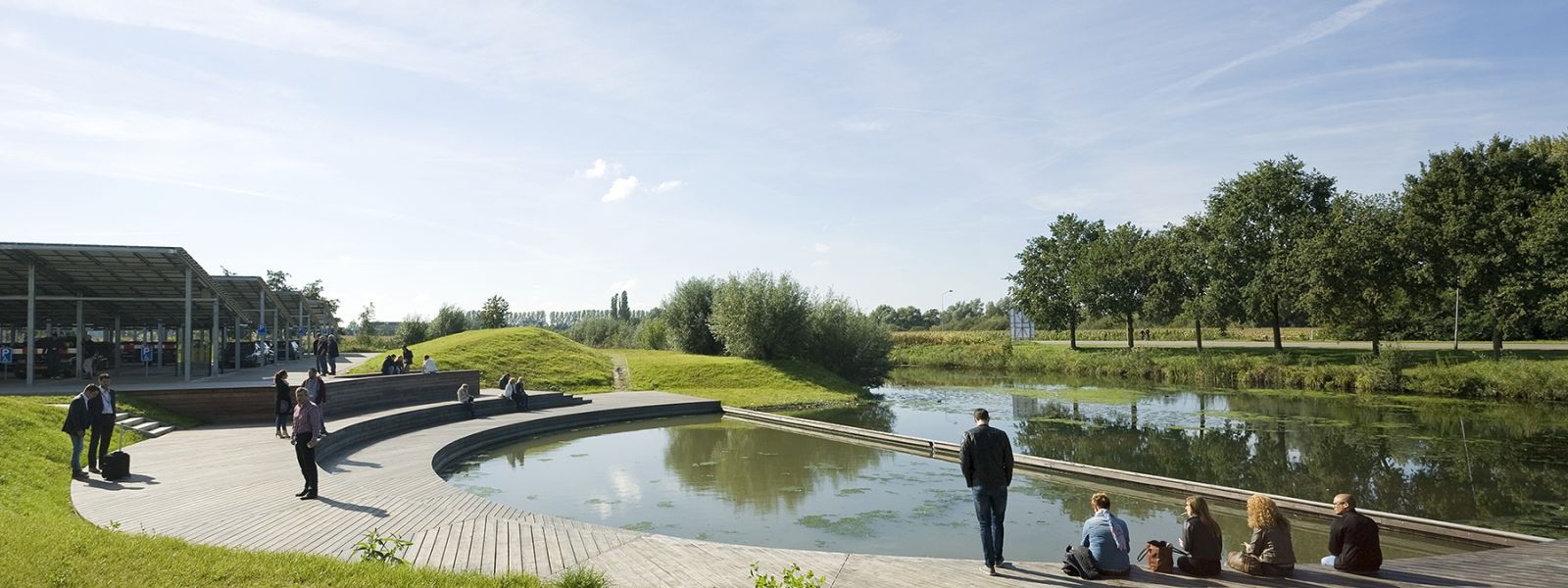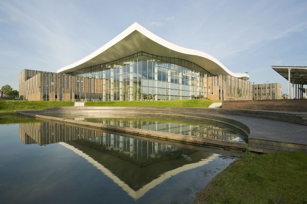 Liander streeft tot 2023 naar een volledig CO2 neutrale operatie. Op innovatieve wijze is een duurzame huisvesting gecreëerd in een complex van vijf bestaande gebouwen, die zijn uitgebreid en overkapt door een ‘klimaatkas’ met een zwevend dak. De huisvesting van 25.000 m2 biedt, volgens de principes van het nieuwe werken, plaats aan 850 flexibele werkplekken.