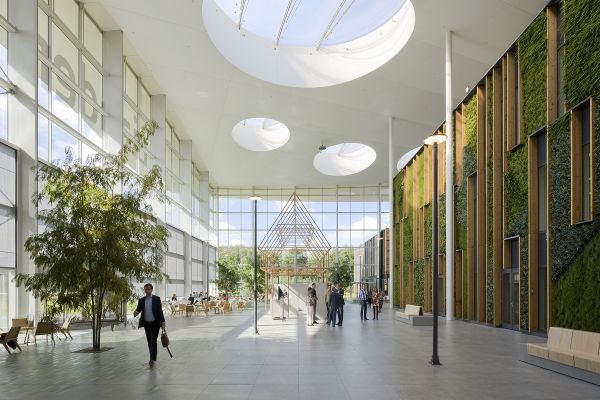 Het welzijn van de gebruikers speelt een belangrijke rol in het ontwerp. Het atrium is bijna volledig transparant, waardoor aan alle kanten veel licht naar binnen kan treden. Grote cirkelvormige openingen in het dak laten het licht diep binnenvallen. Een groengevel, bomen en planten zijn een centraal onderdeel van de CO2- en vochthuishouding en dragen daarmee bij aan een natuurlijk en gezond binnenklimaat.