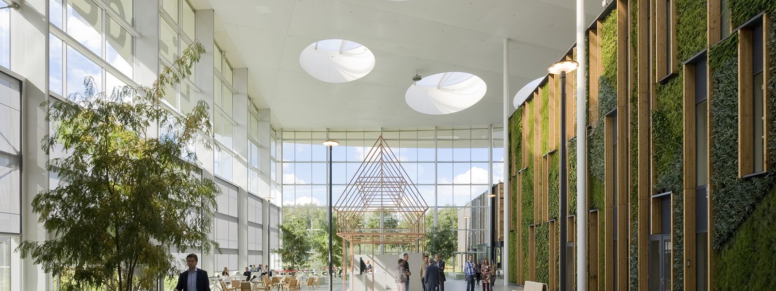 Het welzijn van de gebruikers speelt een belangrijke rol. Het atrium is bijna volledig transparant, waardoor aan alle kanten veel licht naar binnen kan treden. Grote cirkelvormige openingen in het dak laten het licht diep binnenvallen. Een groengevel, bomen en planten zijn een centraal onderdeel van de CO2- en vochthuishouding en dragen daarmee bij aan een natuurlijk en gezond binnenklimaat.