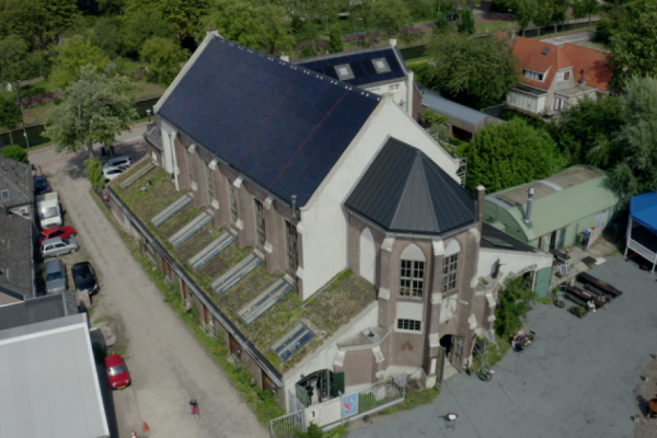 Het hoofddak van Metaal Kathedraal is 4 jaar na de restauratie geheel bekleed met zonnepanelen, maar liefst 240 panelen liggen erop. Het was een mega klus, maar het resultaat is prachtig! Een geweldig voorbeeld dat zonnepanelen ook mooi kunnen zijn en zeker ook op een monument.