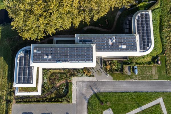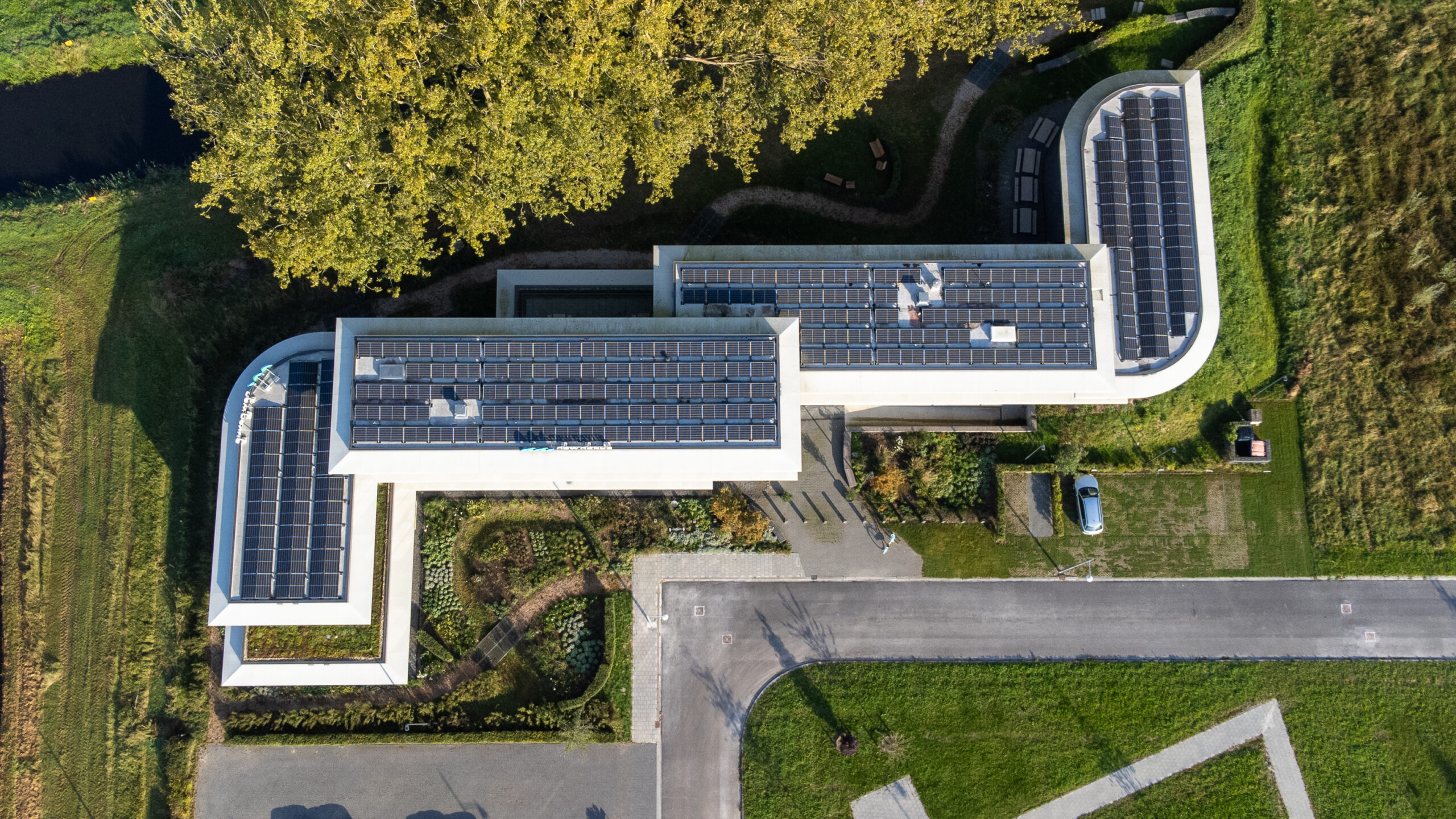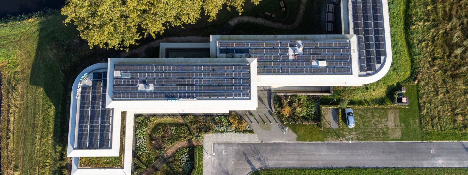 In de praktijk betekent dit dat het gebouw energieneutraal is dankzij de vele zonnepanelen, een warmtepomp, driedubbel en zonwerend glas, led-verlichting met sensoren etc.