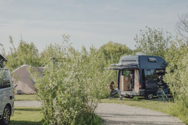 We werken samen met landschapsarchitect Jos Willemsen. Het klassieke campingterrein met veldjes en hagen maakt bij ons plaats voor een natuurlijk landschap in voedselbosstijl. In het landschap vind je wadi’s en hügels, waardoor het licht glooiende landschap dat Zeeland oorspronkelijk was, wordt teruggebracht.