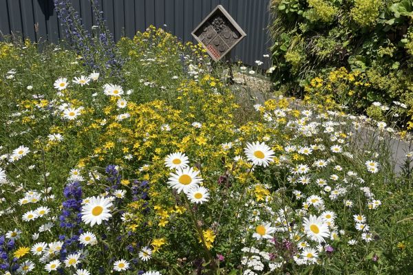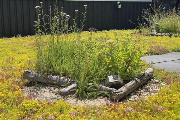 We hebben groene gevels en daken toegepast op en in ons kantoor. We merken hierdoor dat de werkomgeving fijner is, er meer biodiversiteit rond ons kantoor aanwezig is en de temperatuur aangenamer is dan zonder al dit groen. Er zijn veel insecten en vogels aanwezig die voedsel en broedplekken vinden op onze groene daken, multifunctioneel dakterras of in de gevel.