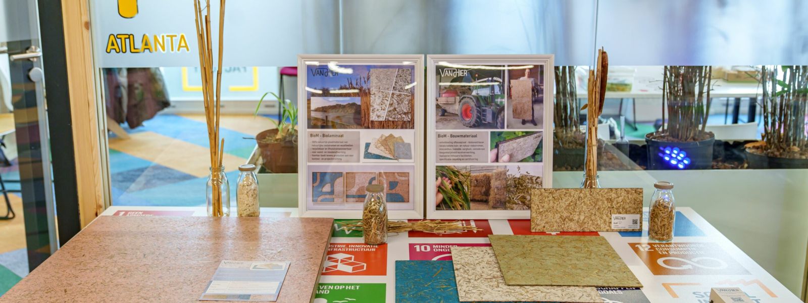In de Social Impact Factory vind je talloze voorbeelden van circulaire en duurzame keuzes. Zoals vloeren gemaakt van afvalstromen. Circulaire en gerecyclede bureaus van kledingresten. Fairtrade koffie en thee.