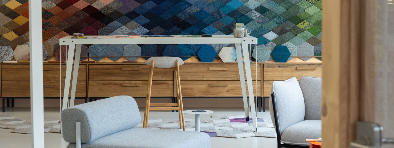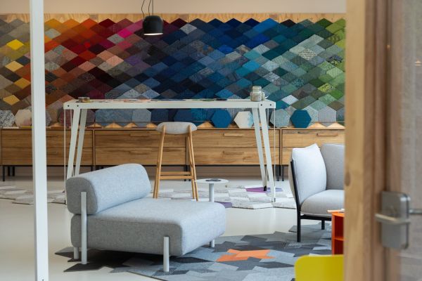 Wij creëren producten van afvalstromen. Ons hele thema is mooie en bruikbare producten maken van afval. Vloerkleden, projectstoffering, akoestische panelen, droogloopmatten en circulair beton.