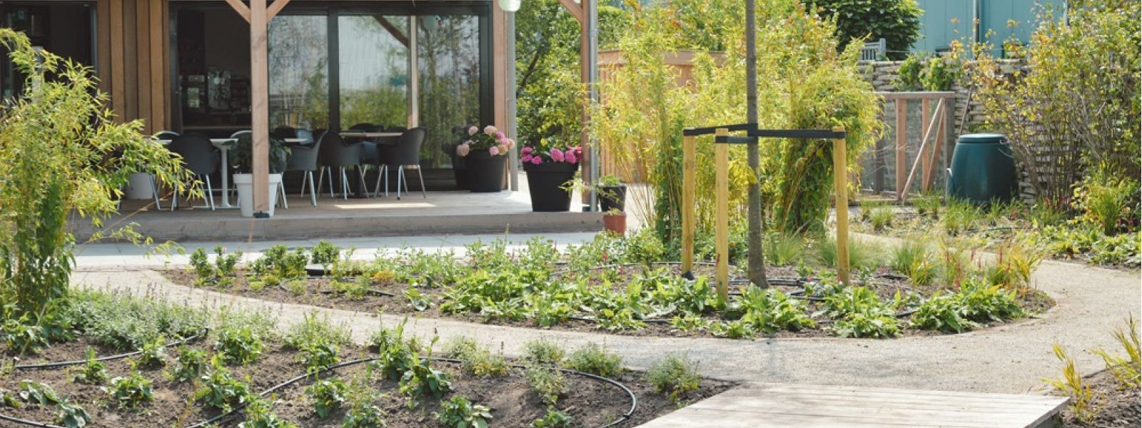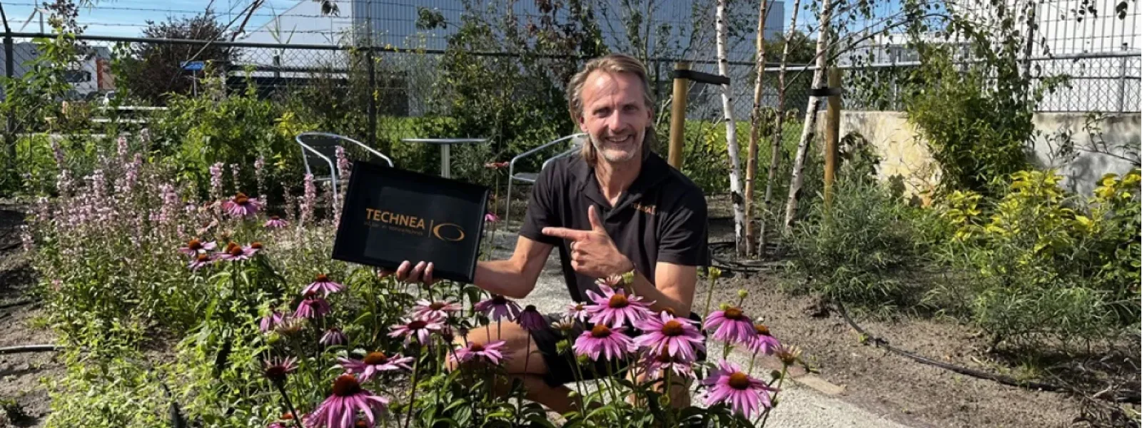Wij investeren al enige jaren een deel van onze winst in de cooperatie Land van Ons. Dit burgerinitiatief koopt land op en verpacht het aan natuurinclusieve boeren. Hierdoor dragen we bij aan het herstel van biodiversiteit elders. Nu is onze eigen omgeving aan de beurt. Daarom laten we 500m² van ons bedrijven terrein omtoveren tot een groene oase waarbij de nadruk ligt op biodiversiteit en circulariteit. Vanwege de schaal en uniekheid, zijn we onlangs genomineerd voor de Duurzame 30.