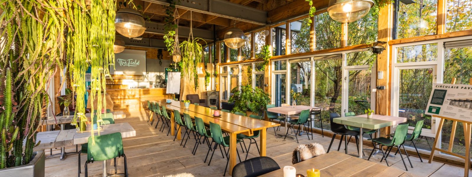 The Field, niet alleen een hotspot waar het gesprek over duurzaamheid wordt gevoerd, maar een fysieke locatie waar partijen kunnen samenwerken aan de ontwikkeling en implementatie van duurzame oplossingen voor de stad. Een plek waar innovatieve voorbeelden en nieuwe oplossingen voor een duurzame toekomst worden ontwikkeld en gedemonstreerd. We geloven in circulair bouwen – dat betekent dat we niet alleen vier muren optrekken, maar we gebruiken ook materialen uit onze directe omgeving om iets prachtigs te creëren. Op het terrein van de voormalige kweektuin van Het Singelpark zijn zowel het Paviljoen als de tiny offices gebouwd met hergebruikte materialen. Onze nieuwste aanwinst is de Smart Building, het huis van toekomst, een fysieke experimenteer- en onderwijslocatie welke wordt doorontwikkeld met de nieuwste technologieën. Daarnaast hebben we een prachtige tuin, een oase van groen naast Leiden Centraal Station waar we actief bijdragen aan de verbetering van de biodiversiteit. Alle ruimtes op The Field zijn te huur als inspirerende vergaderruimte.