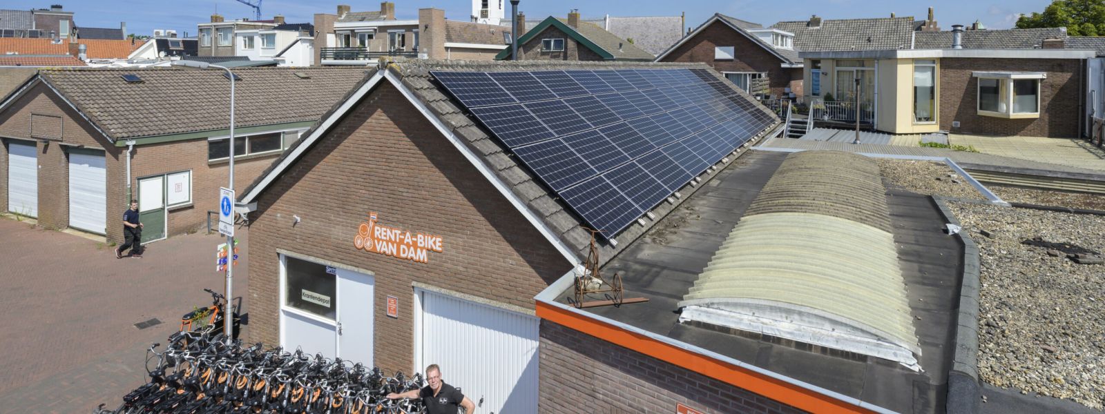 In het bijna honderd jaar oude winkelpand pakt Van Dam Fietsen de verduurzaming stap voor stap aan. Eerst is het gebouwcomfort verbeterd met nieuwe winkelramen met dubbel glas. De volgende geplande stap is het vervangen van de gasketel door energiezuinige airco’s die gericht verwarmen en koelen op de plekken waar mensen werken.