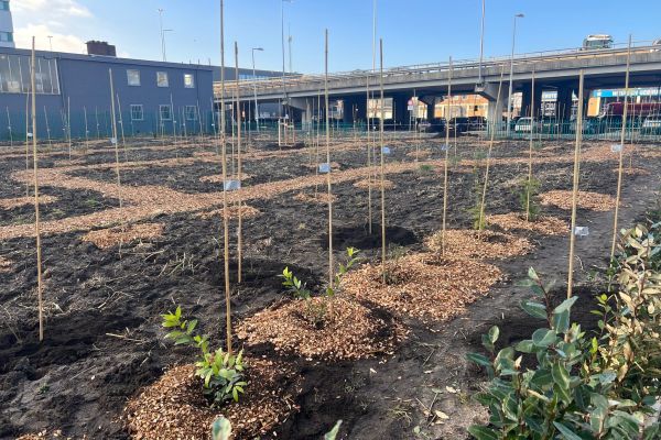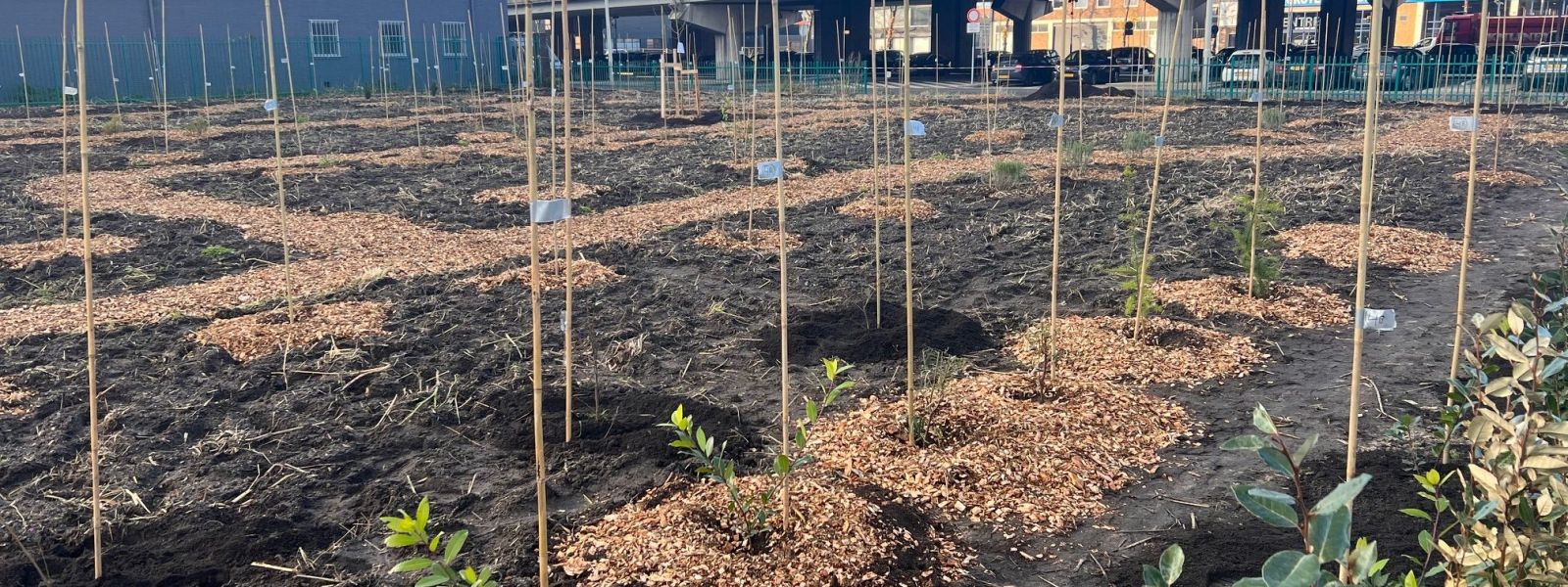 Rondom ons kantoorpand is gevelbeplanting aangebracht en is de parkeerplaats voorzien van sedem en een boom. Sinds eind 2023 is ook een klein Voedselbos met 150 bomen, planten en struiken aangeplant.