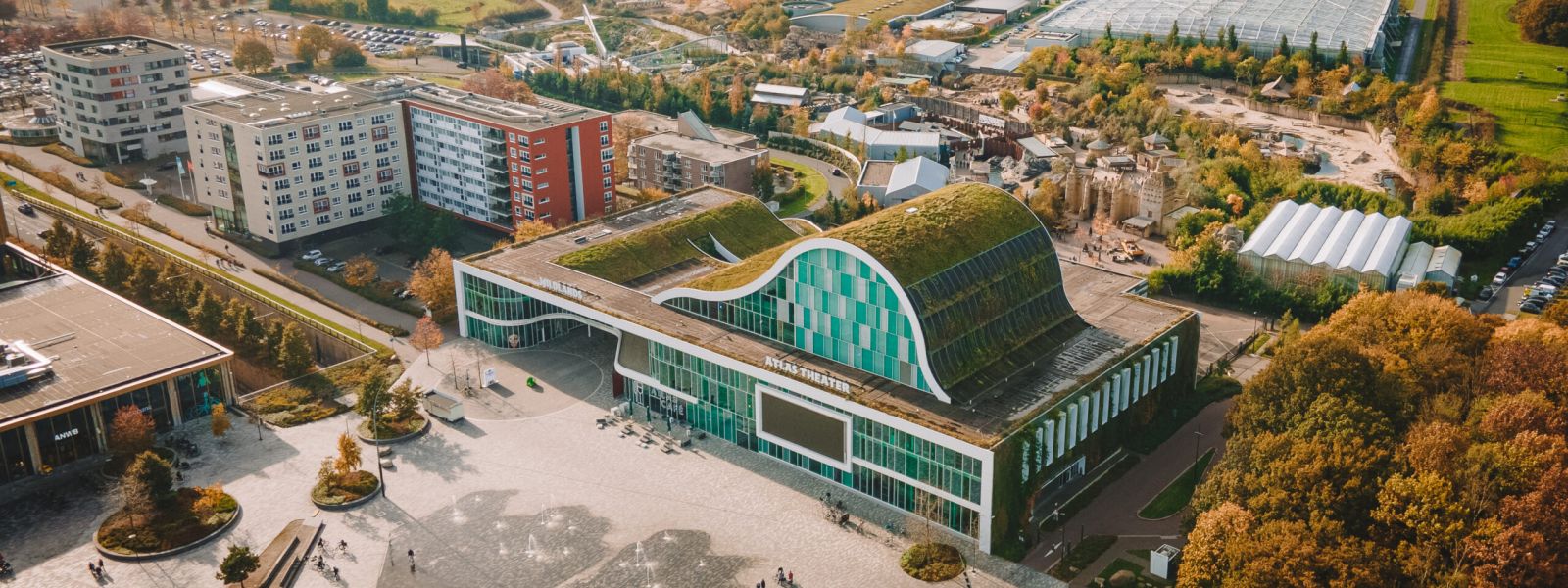 Het gebouw is de entree van WILDLANDS en huisvest het ATLAS Theater met theater- en congreszalen.