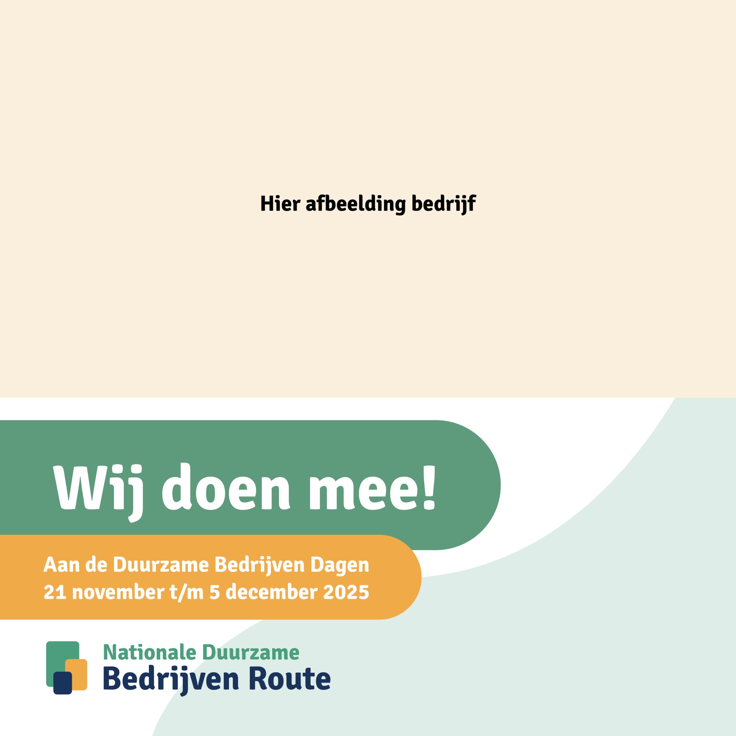 Wat leuk dat je meedoet aan de Duurzame Bedrijven Dagen van 21 november tot en met 5 december 2025! We willen je van harte aanmoedigen om ook je relaties, klantenkring, bedrijvenkring of businessclub op de hoogte te brengen van je deelname aan de Duurzame Bedrijven Dagen. Op deze pagina vind je verschillende teksten en afbeeldingen die je op je eigen kanalen kunt gebruiken en plaatsen.