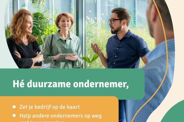 Het doel van de Duurzame Bedrijven Route is dat ondernemers hun eigen bedrijf openstellen als voorbeeldbedrijf of dat ze zich inschrijven voor een bezoek aan een duurzaam bedrijf. Ondernemers kunnen elkaar zo inspireren en op weg helpen met hun eigen ervaringen!