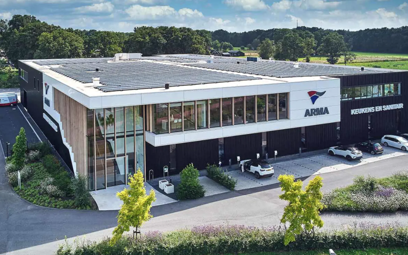 Arma Keukens heeft een twee-verdiepingen-tellend nieuwe pand duurzaam en compleet energieneutraal gebouwd. Warmtepompen koelen en verwarmen het gebouw door mid…