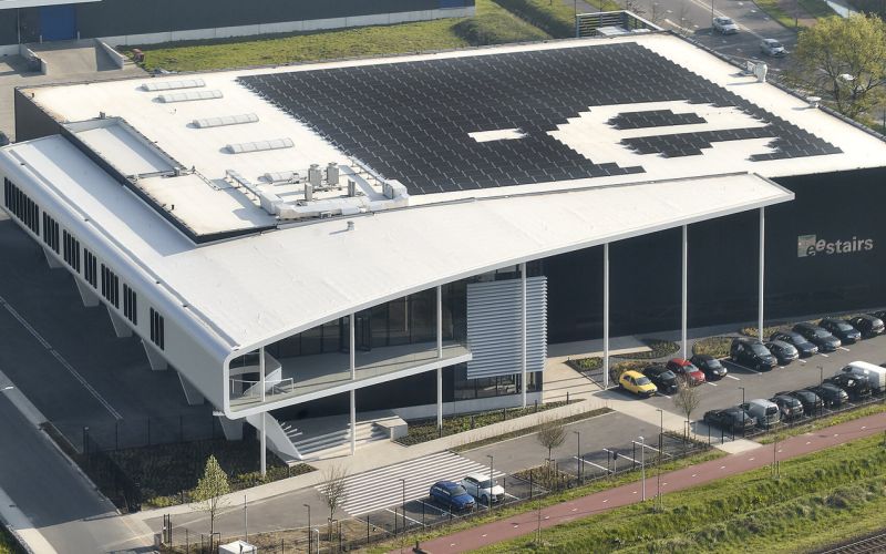 Gebouw is 80% Biobased; regenwateropvang om toiletpotten door te spoelen; Zonnepanelen op het dak voor duurzame opgewekte energie.