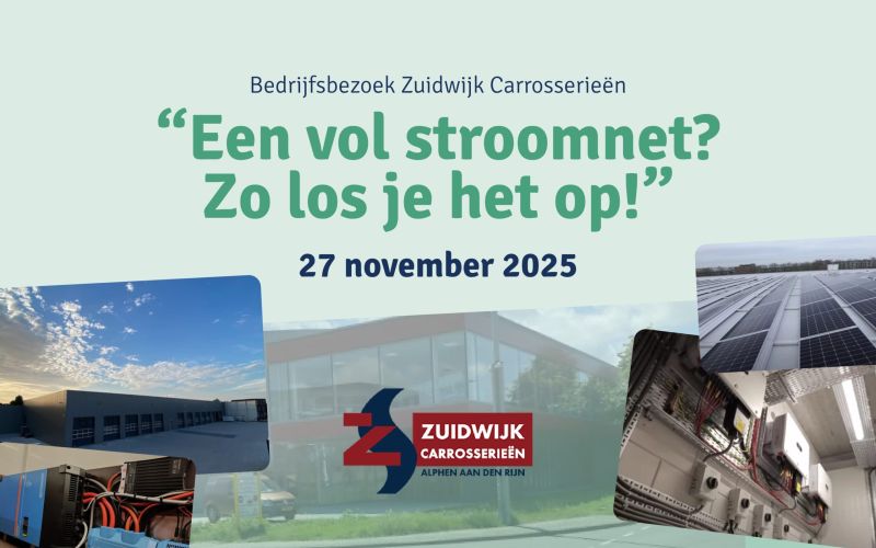 20 oktober 2025 Bedrijfsbezoek Zuidwijk Carrosserieën: “Een vol stroomnet? Zo los je het op!” – 27 november 2025 Exclusief bedrijfsbezoek bij Zuidwijk Carrosserieën op 27 november 2025 in Alphen aan den Rijn. Thema: “Een vol stroomnet? Zo los je het op!”. Rondleiding en l… Bekijken