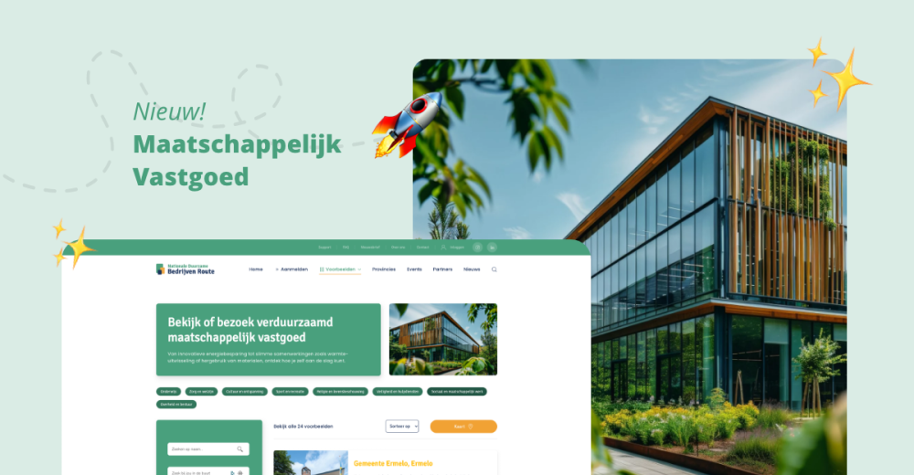 Onze website blijft in ontwikkeling! Naast duurzame bedrijven bieden we nu ook een overzicht van maatschappelijk vastgoed dat is verduurzaamd. Scholen, sportaccommodaties, dorpshuizen en andere maatschappelijke gebouwen laten zien welke maatregelen zij hebben genomen, waarom ze deze keuzes maakten en welke effecten dit heeft op energieverbruik, comfort en kostenbesparing.