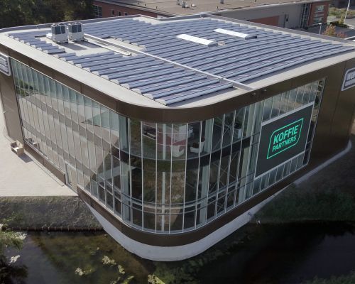 KoffiePartners is daar zelf een mooi voorbeeld van. Op ons platform delen ze hoe ze hun pand zo duurzaam mogelijk hebben ingericht. De zonnepanelen zorgen niet alleen voor stroom in het hele gebouw, maar ook voor het scherm buiten en hun elektrische autoโs. Binnen zie je energiebesparende installaties, slimme klimaatbeheersing en alleen maar LED-verlichting. Bij de inrichting is gekozen voor hergebruik van materialen, en afval wordt netjes gescheiden en hergebruikt.